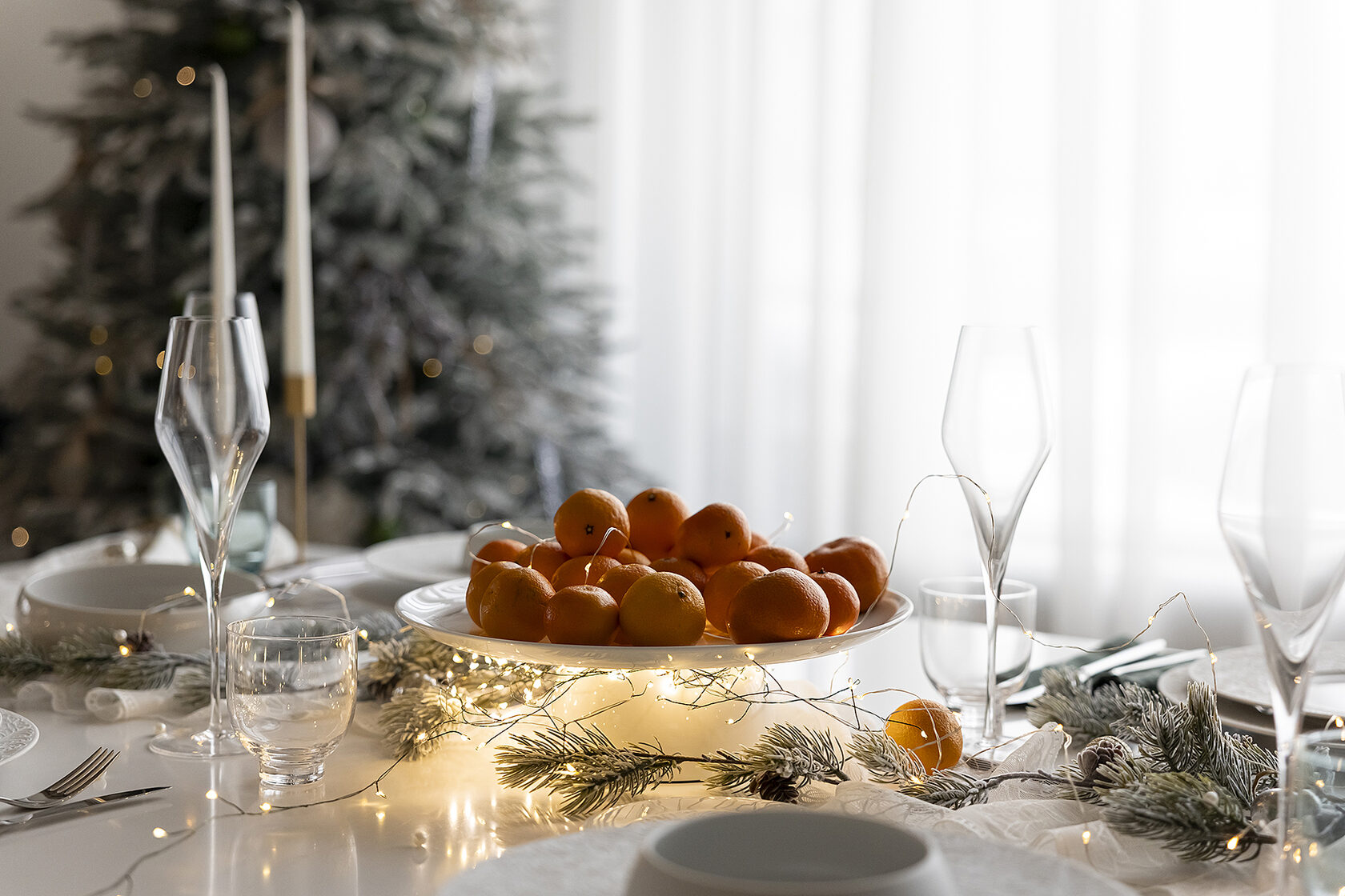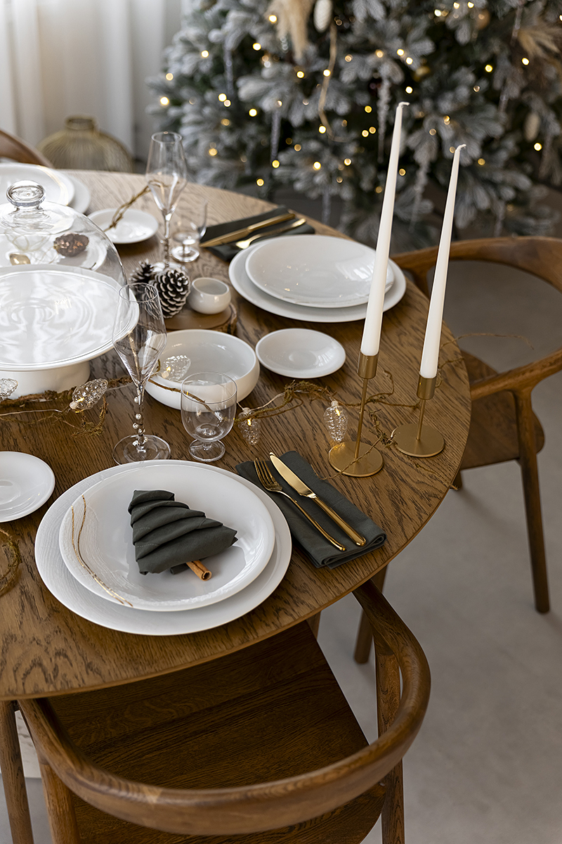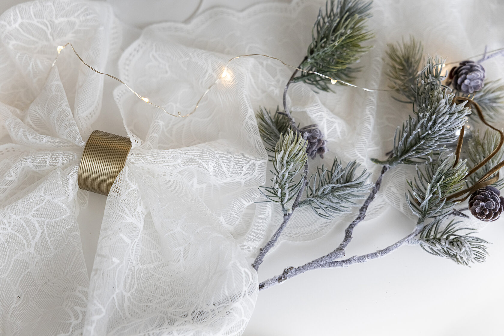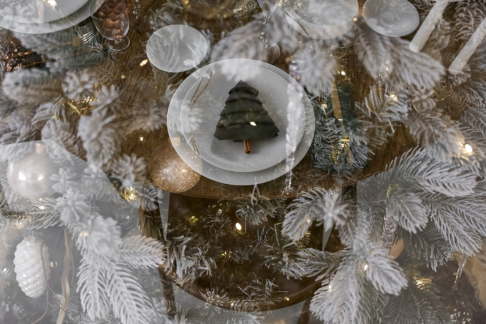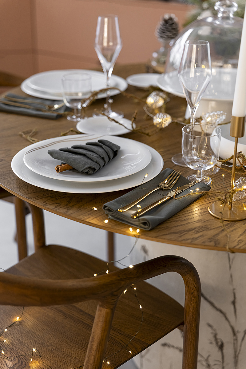 Сегодня мы взяли коллекцию Couture и поддержали её резной узор настоящим кружевом. Добавили мягкий свет гирлянды, жемчуг, вплели хвою. И в итоге получился стол с ощущением тех самых узоров, которые мороз рисует на стекле❄️